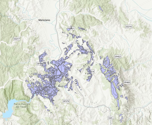 Description: Poligoni di visibilità dalla strada SS 448 nella Provincia di Perugia