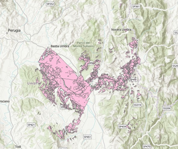Description: Poligoni di visibilità dalla strada SS 77 nella Provincia di Perugia