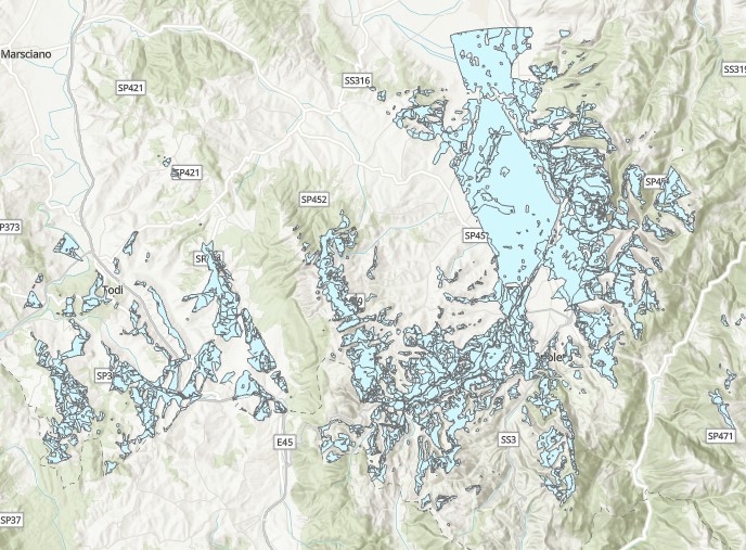 Description: Poligoni di visibilità dalla strada SR 418 nella Provincia di Perugia