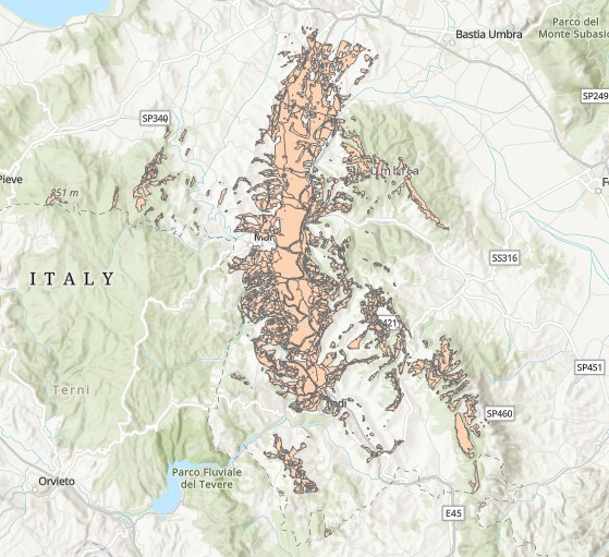 Description: Poligoni di visibilità dalla strada SR 397 nella Provincia di Perugia
