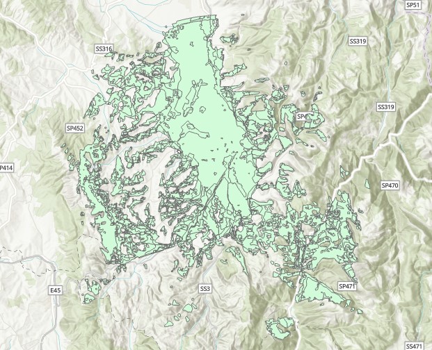Description: Poligoni di visibilità dalla strada SR 395 nella Provincia di Perugia