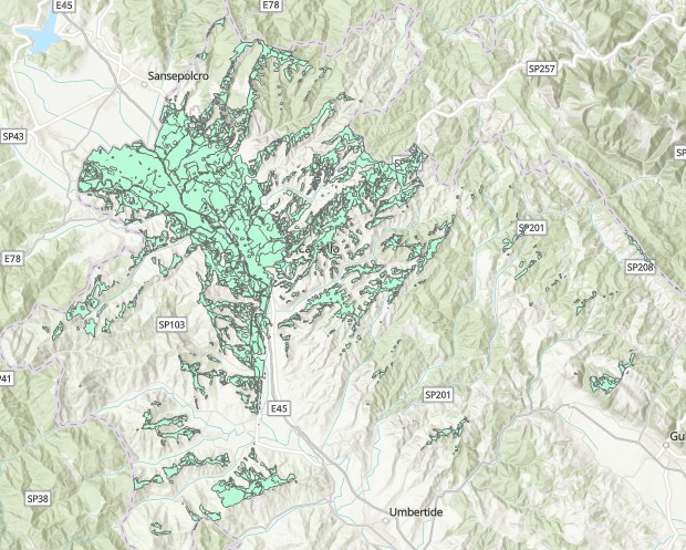 Description: Poligoni di visibilità dalla strada SR 257 nella Provincia di Perugia