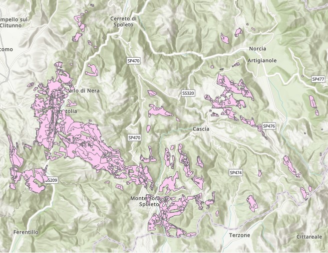Description: Poligoni di visibilità dalla strada RA 6 nella Provincia di Perugia