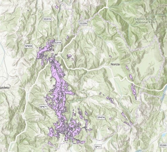 Description: Poligoni di visibilità dalla strada RA 6 nella Provincia di Perugia