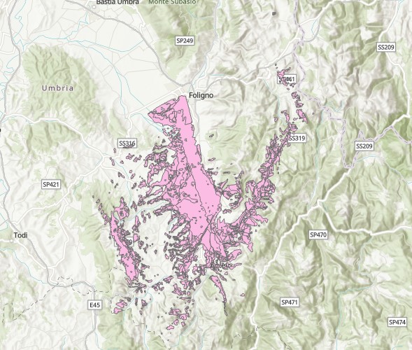 Description: Poligoni di visibilità dalla strada RA 6 nella Provincia di Perugia