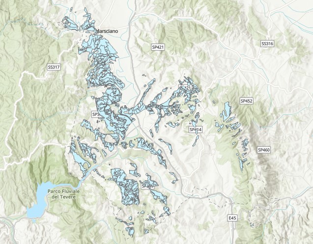 Description: Poligoni di visibilità dalla strada RA 6 nella Provincia di Perugia