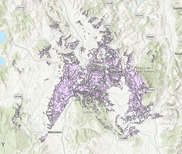 Description: Poligoni di visibilità dalla strada RA 6 nella Provincia di Perugia