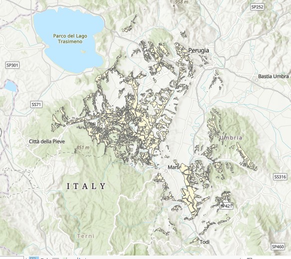 Description: Poligoni di visibilità dalla strada RA 6 nella Provincia di Perugia