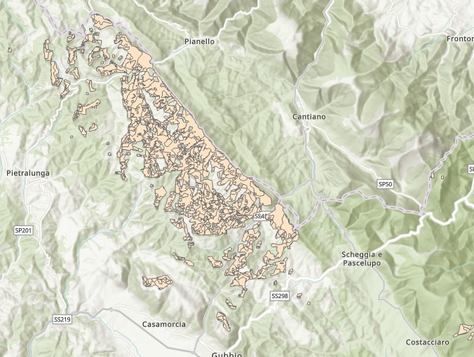 Description: Poligoni di visibilità dalla strada RA 6 nella Provincia di Perugia