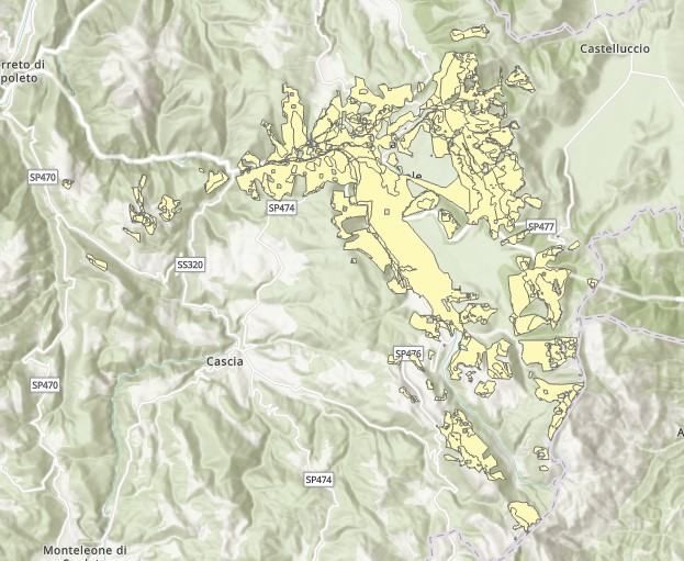 Description: Poligoni di visibilità dalla strada SS SR 396 nella Provincia di Perugia