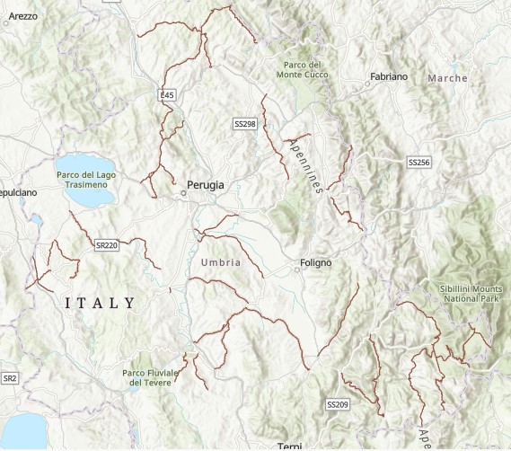 Description: Lineari delle Strade Provinciali nella Provincia di Perugia