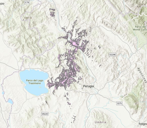 Description: Poligoni di visibilità dalla strada RA 6 nella Provincia di Perugia