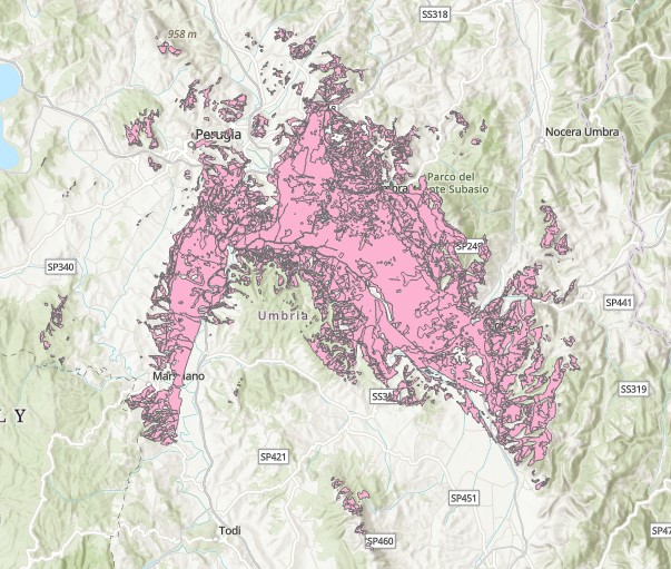 Description: Poligoni di visibilità dalla strada RA 6 nella Provincia di Perugia
