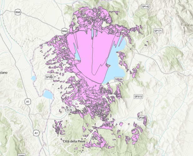 Description: Poligoni di visibilità dalla strada RA 6 nella Provincia di Perugia