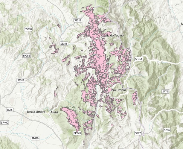 Description: Poligoni di visibilità dalla strada RA 6 nella Provincia di Perugia