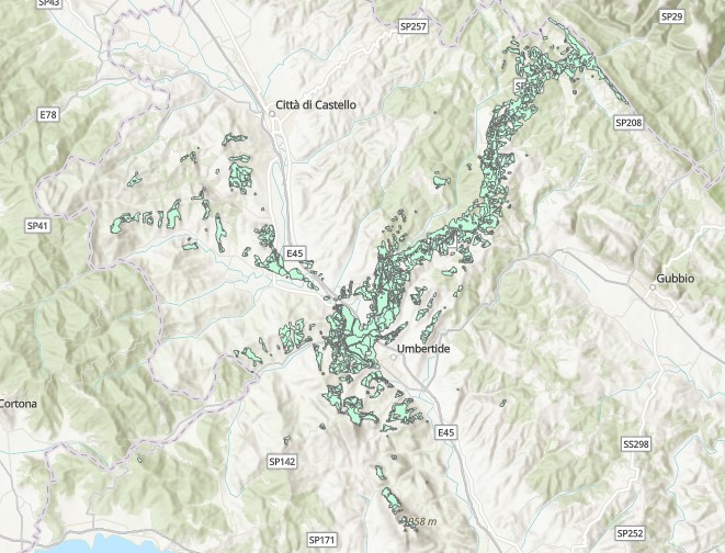 Description: Poligoni di visibilità dalla strada RA 6 nella Provincia di Perugia