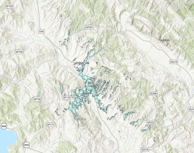 Description: Poligoni di visibilità dalla strada RA 6 nella Provincia di Perugia