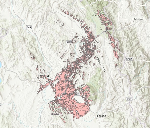 Description: Poligoni di visibilità dalla strada SS 318 nella Provincia di Perugia