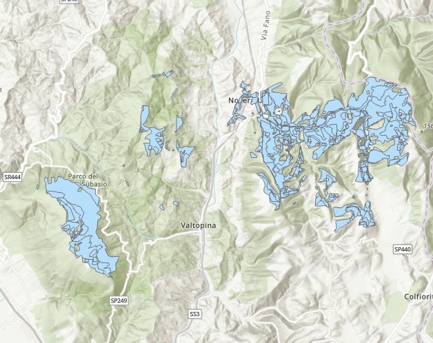 Description: Poligoni di visibilità dalla strada SR 361 nella Provincia di Perugia