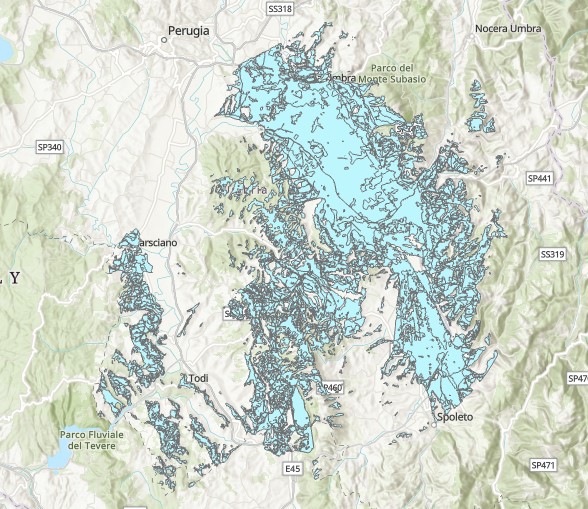 Description: Poligoni di visibilità dalla strada SR 316 nella Provincia di Perugia