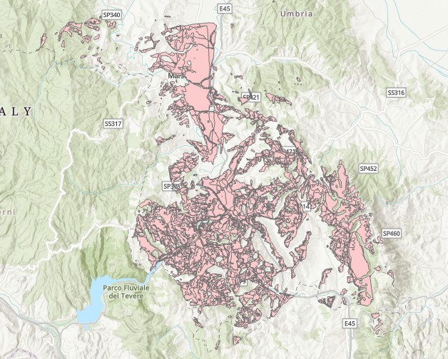 Description: Poligoni di visibilità dalla strada SR 79 Bis nella Provincia di Perugia