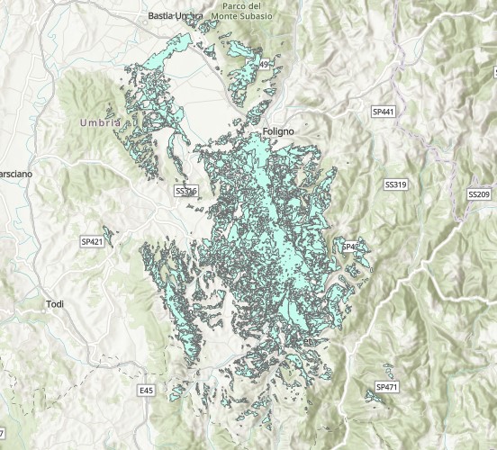 Description: Poligoni di visibilità dalla strada SR 3 nella Provincia di Perugia